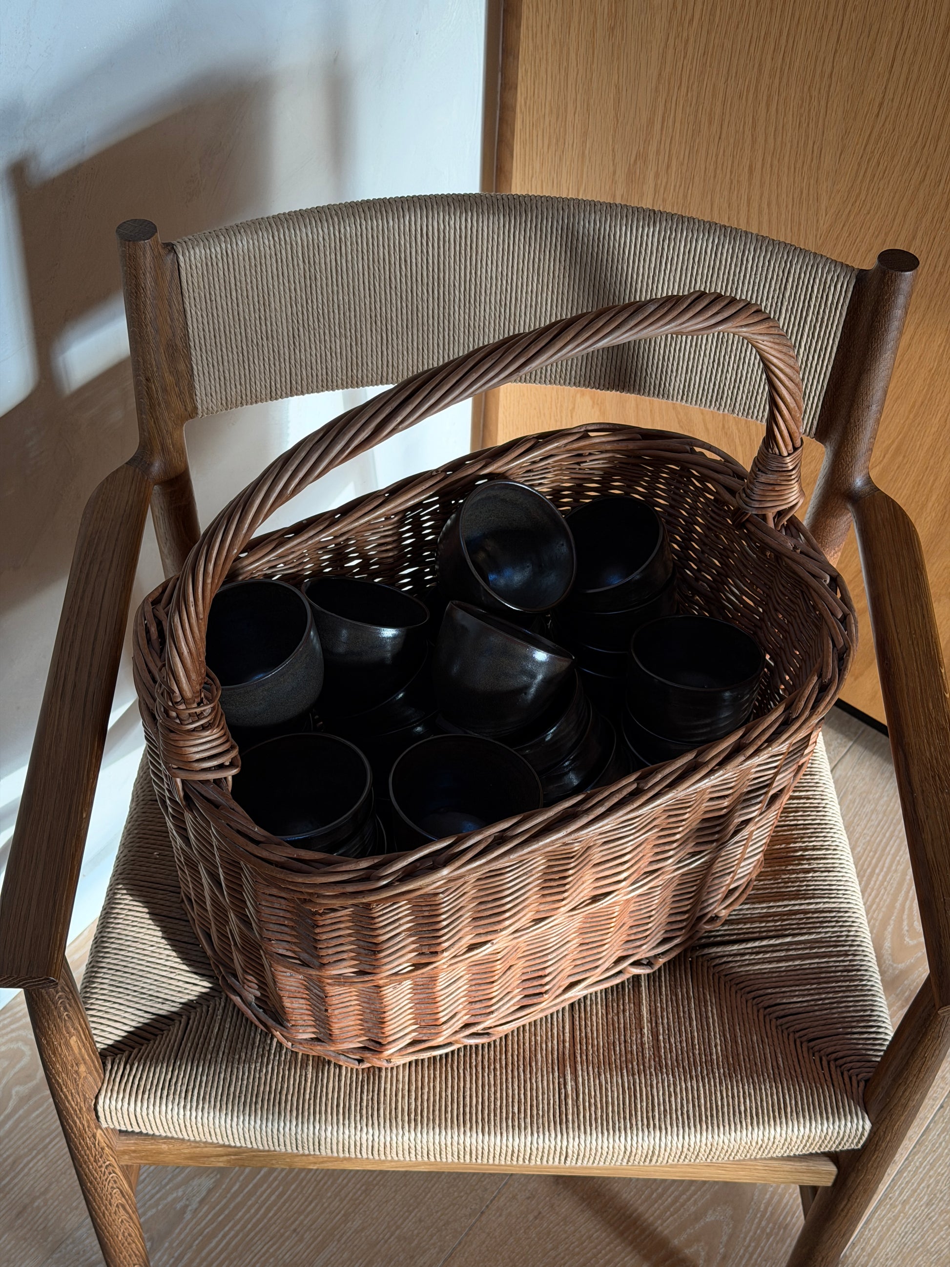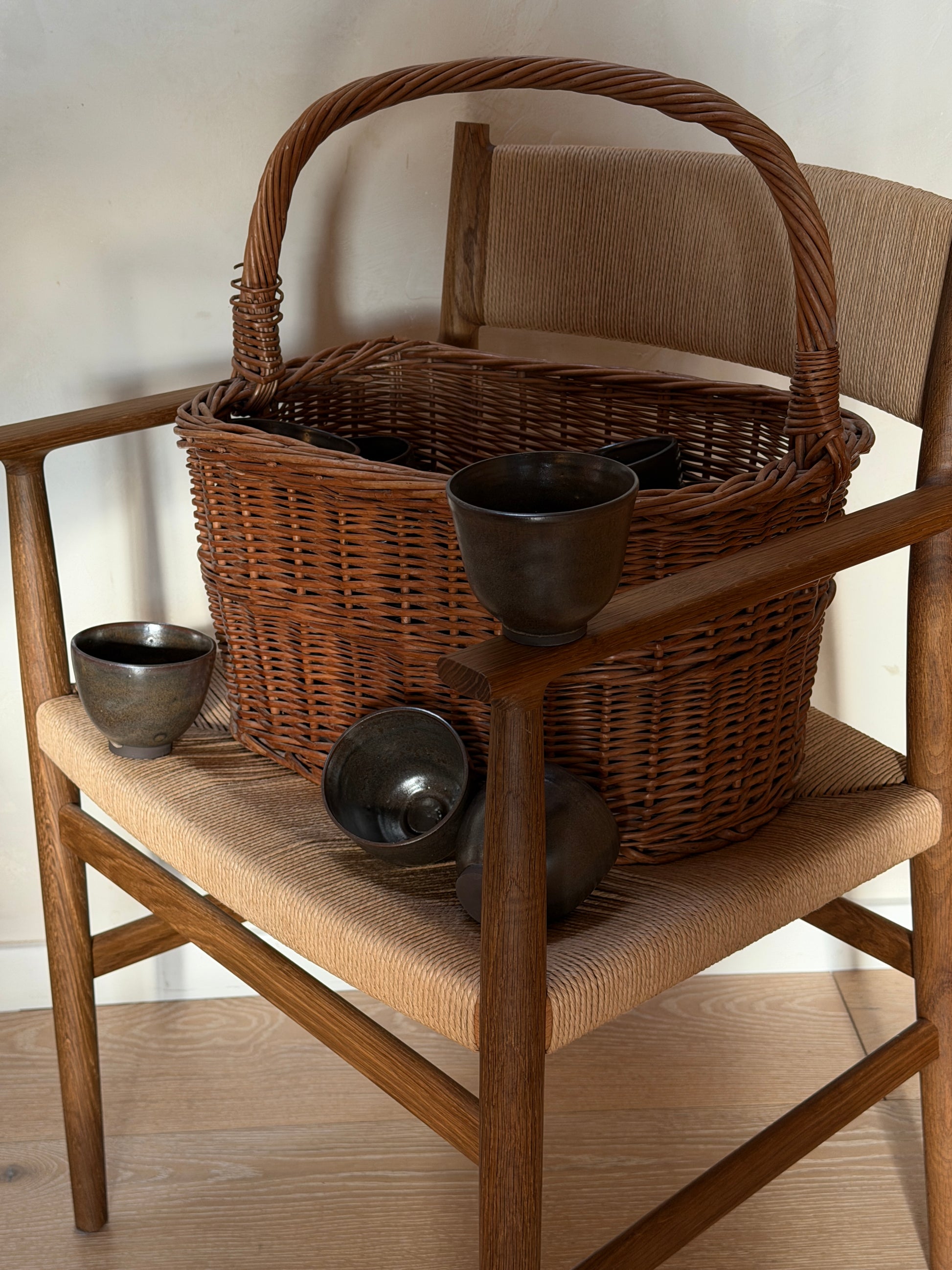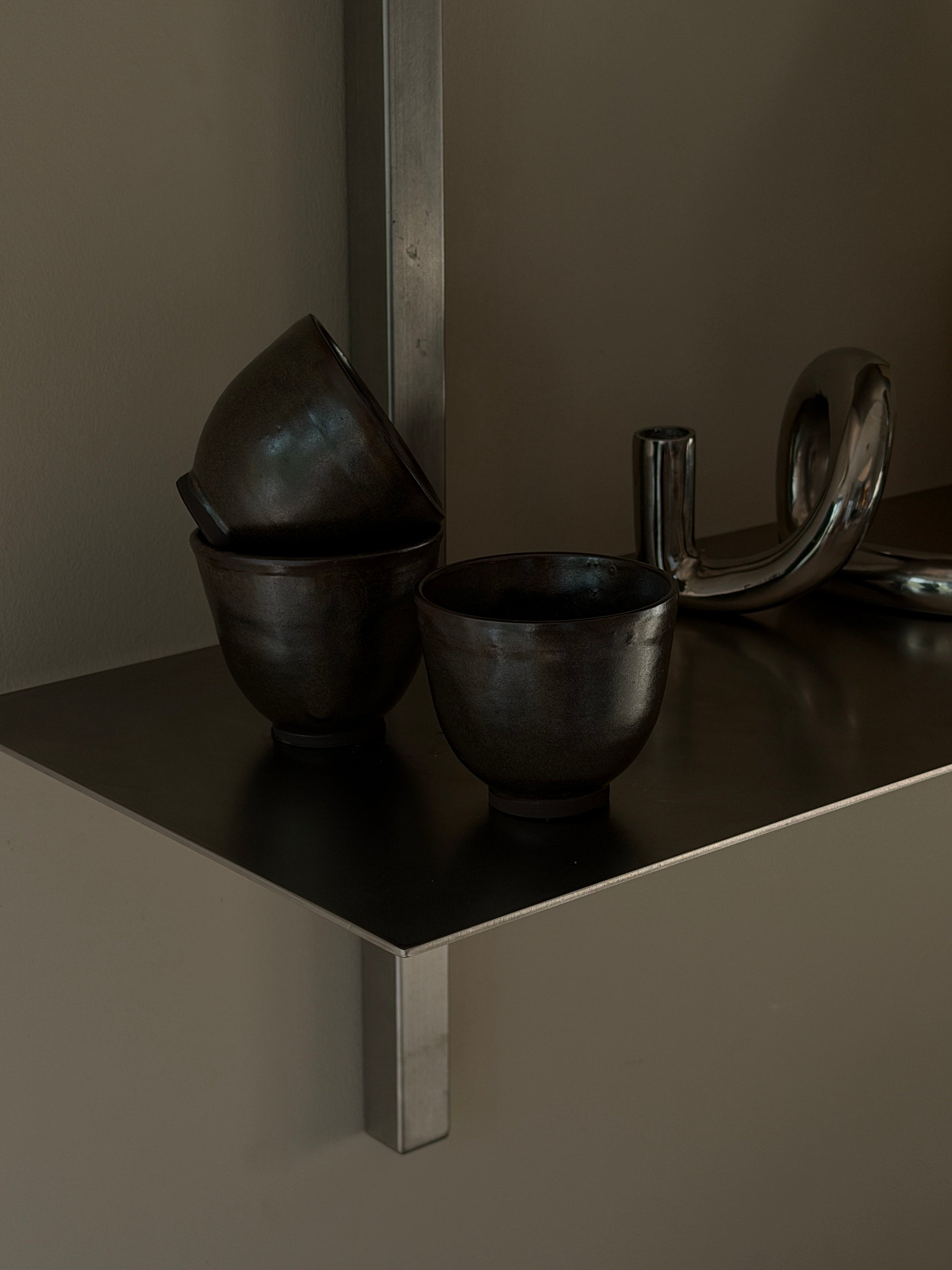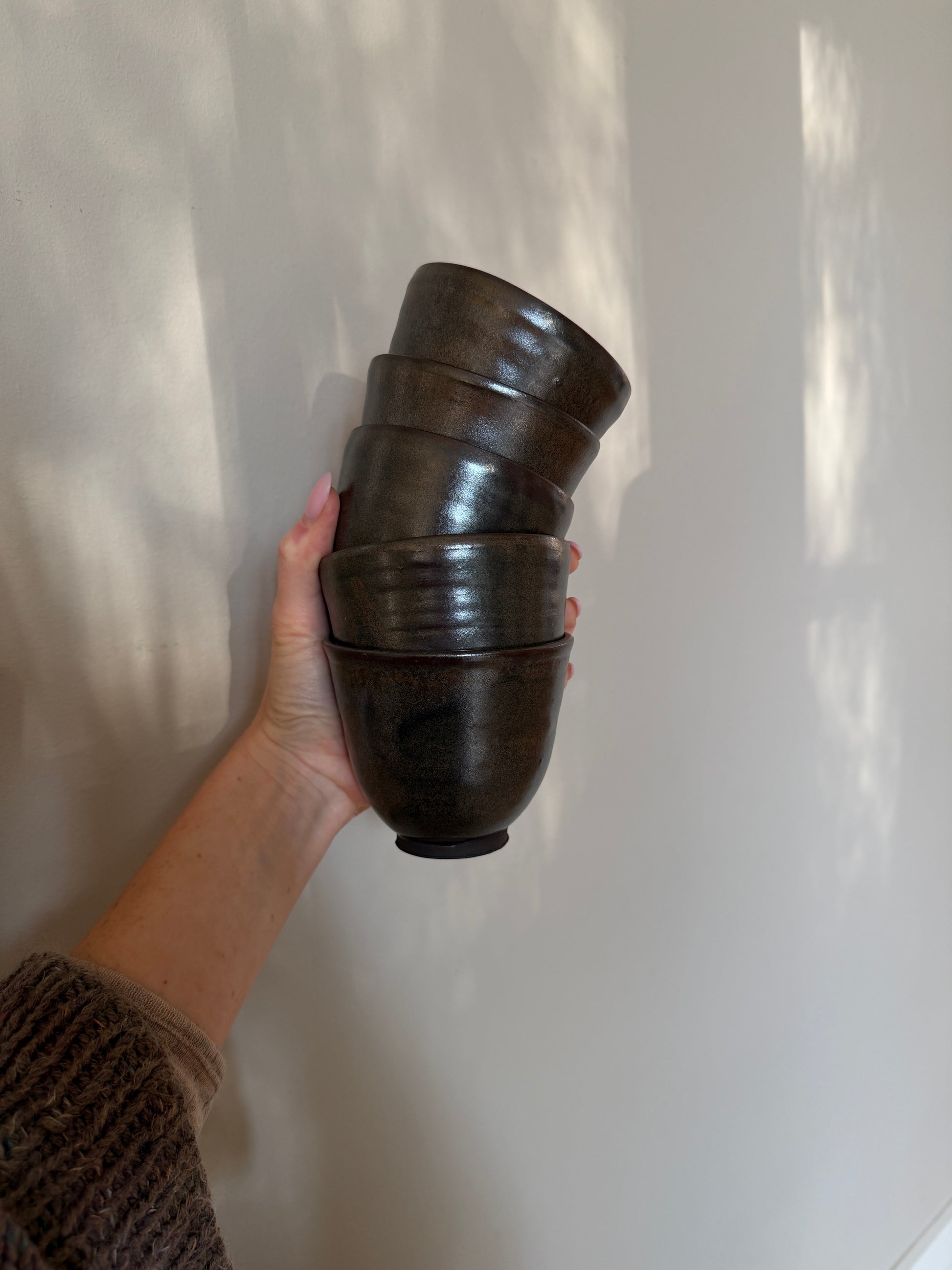 Chokokop med fod. Glaseret i smuk changerende glasur, som viser forskelligt udtryk, alt efter hvordan lyset falder på koppen.